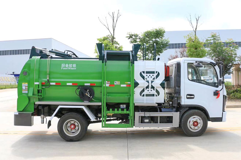 餐廚(泔水)垃圾車:又稱廚余垃圾車余廚垃圾車或者泔水車,是垃圾車的一種,主要用于收集和運輸生活垃圾,食品垃圾(泔水)及城市淤泥的專用 車輛。可配裝載不同規格的標準垃圾桶,廣泛應用在賓館、飯店、食堂、學校 等單位的餐廚泔水處理。具有裝、卸垃圾自動化程度高、工作可靠、密封性好、 裝載容積大、操作簡便、作業過程密閉,無污水泄露和異味的散發,環保性好 等特點。