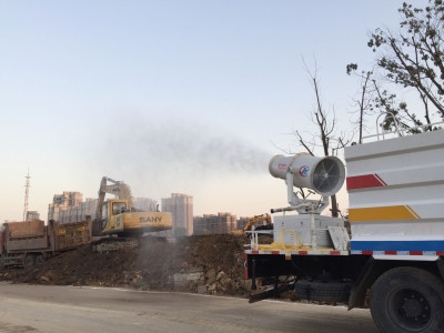 噴射半徑50米首輛霧炮車上崗 助力重點城建項目