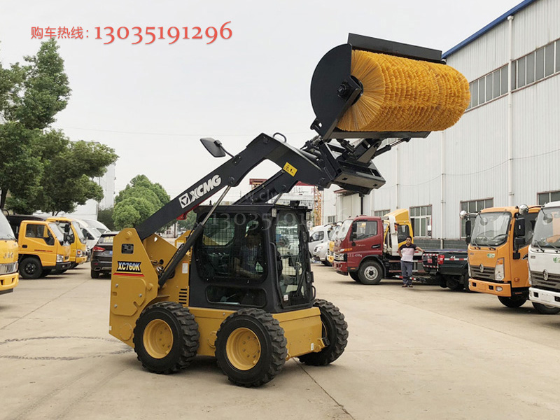 挖機(jī)改裝2米掃雪滾刷 徐工XC760K滑移裝載機(jī)裝雪刷