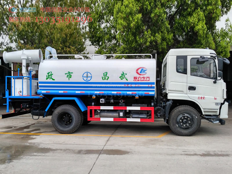 國五10-12方綠化噴灑車、多功能霧炮車,搭載程力專用汽車股份有限公司自主研發(fā)生產(chǎn)的霧炮機(jī),兼具綠化噴灑,消防應(yīng)急,除塵降塵,噴藥消毒等功能,遠(yuǎn)程遙控,使用方便。