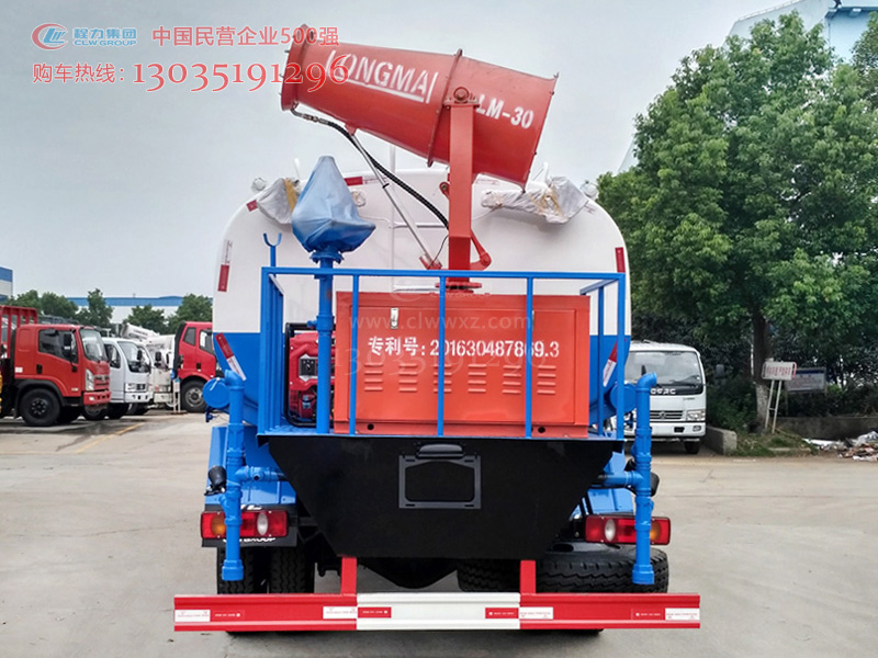 上裝配置:罐體容積:12方,罐體鋼板采用Q235碳鋼鋼材,前沖后灑、側(cè)噴、平臺(tái)高炮、自流閥及消防接頭各1個(gè)、水管2根、標(biāo)配億豐泵或金龍泵 ,可選裝25米-40米噴霧機(jī)