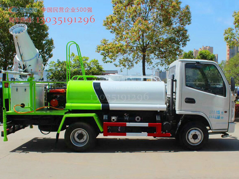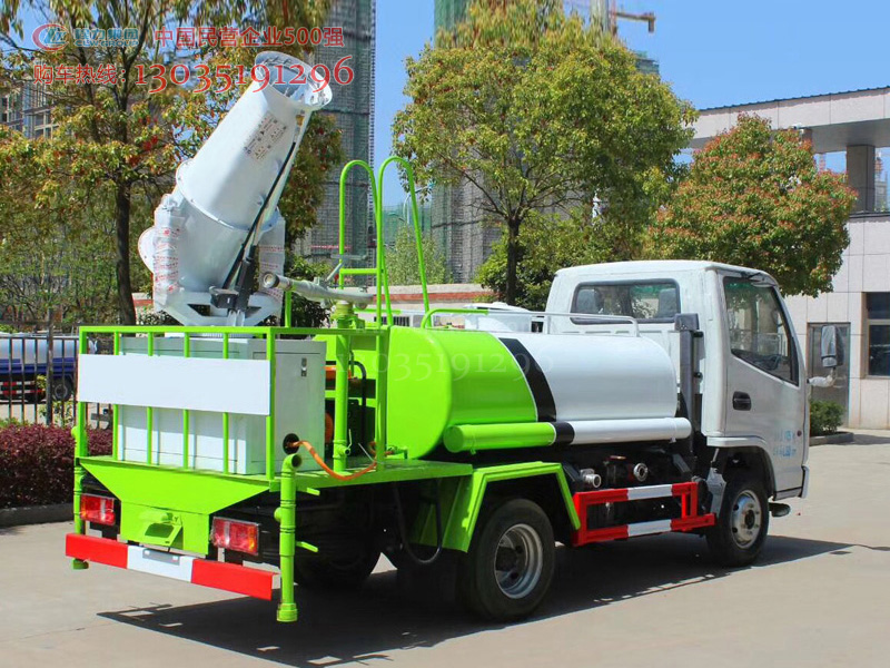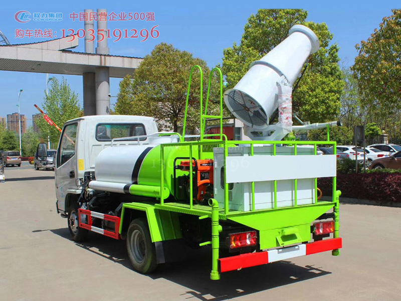 上裝配置: 整車嚴格按照國家公告生產,罐體容積:2.0立方,新款方形罐體,罐體鋼板采用Q235碳鋼鋼材,前沖后灑、側噴、平臺高炮、自流閥及消防接頭各1個、水管2根、標配大功率自吸泵 ,可選裝25-40米噴霧機