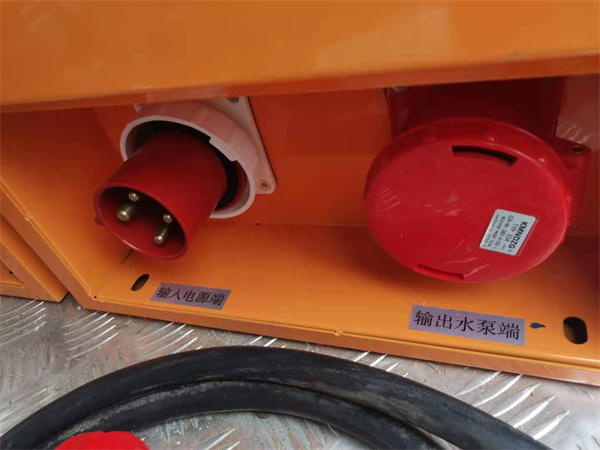 4. 當水泵及排水管鋪設好后,將水泵放入水中,后接水泵電源接頭插入控制柜水泵端口;(見示圖)