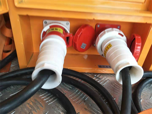 5. 將主電源動力柜輸出端按序號插入對應的水泵控制柜輸入電源端口;(見示圖)
