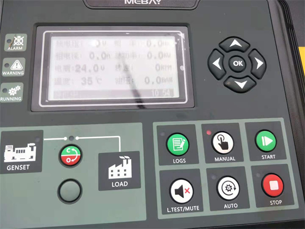 “手形按鍵”MANUAL 鍵(手動模式),在按START鍵啟動發電機組等待發電機組運行正常后在進行下步操作;