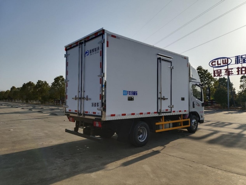 (1):冷藏車采用鋼木結(jié)構(gòu),斷橋隔熱技術(shù),鍍鋅管骨架,內(nèi)外選用優(yōu)質(zhì)玻璃鋼(不吸光、隔熱性好、硬度強(qiáng)、抗氧化),中間填充8個(gè)厚XPS擠塑聚笨板;高強(qiáng)度粘合劑、正壓機(jī)熱壓成型(采用全自動(dòng)打膠壓板機(jī),打膠+壓板一氣呵成,打膠均勻,不易鼓包,出板迅速高效)。