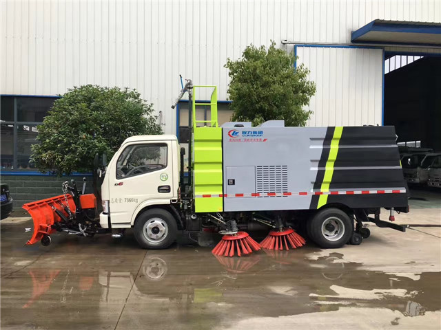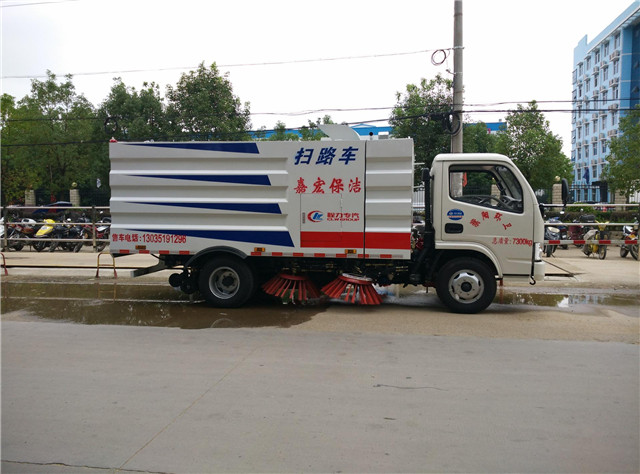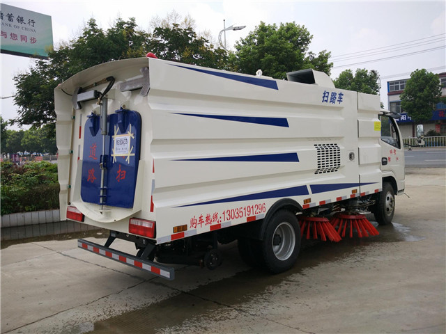 東風(fēng)5方掃路車,底盤型號為:EQ1041SJ3BDF,發(fā)動機型號CY4BK551國五環(huán)保75KW發(fā)動機,軸距為:3308,輪胎規(guī)格,7.00-16。上裝配置:不銹鋼垃圾箱容積4立方,不銹鋼清水箱容積1.5立方,五十鈴副發(fā)動機(JX493G,57KW),伊頓(美國)擺線馬達,海普瑞斯電磁閥組(美國合資),控制開關(guān)(法國施耐德),北京大功率風(fēng)機,耐磨液壓油管.灑水電子水泵,液壓管路采用德國標(biāo)準(zhǔn)技術(shù)密封結(jié)構(gòu)形式,關(guān)鍵控制部件采用法國施耐德技術(shù)原件,使用壽命長,穩(wěn)定可靠,故障率低;液壓元件采用集成疊加設(shè)計,駕駛室電液集中控制,操作方便;4掃盤有防碰撞 自動避讓功能,可根據(jù)地面泥沙嚴(yán)重程度及行車速度選擇掃盤的清掃方式;吸嘴為后置浮動式,可自動調(diào)節(jié)適應(yīng)地面凹凸不平的狀況;可調(diào)節(jié)的霧狀噴灑水壓塵,在節(jié)水的同時消除二次污染。車尾部帶箭頭指示燈。根據(jù)需要可加裝2.5米推雪鏟,灑水消防炮,降塵噴霧機。