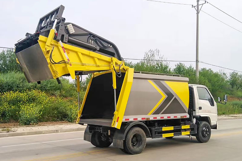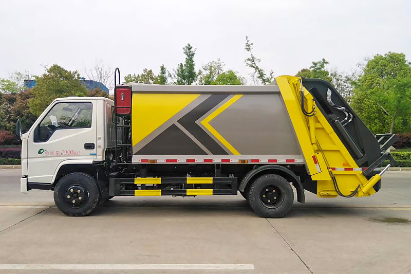 專用功能:廂體容積6立方,邊4底4,揚州中梅多路閥,合肥油泵,帶CAN一鍵操作系統,手自一體控制方式,具備雙方蠕動壓縮功能,后翻轉可選掛240L塑料垃圾桶或圓鐵桶翻轉架,也可選裝半封閉三角斗或全封閉落地斗。